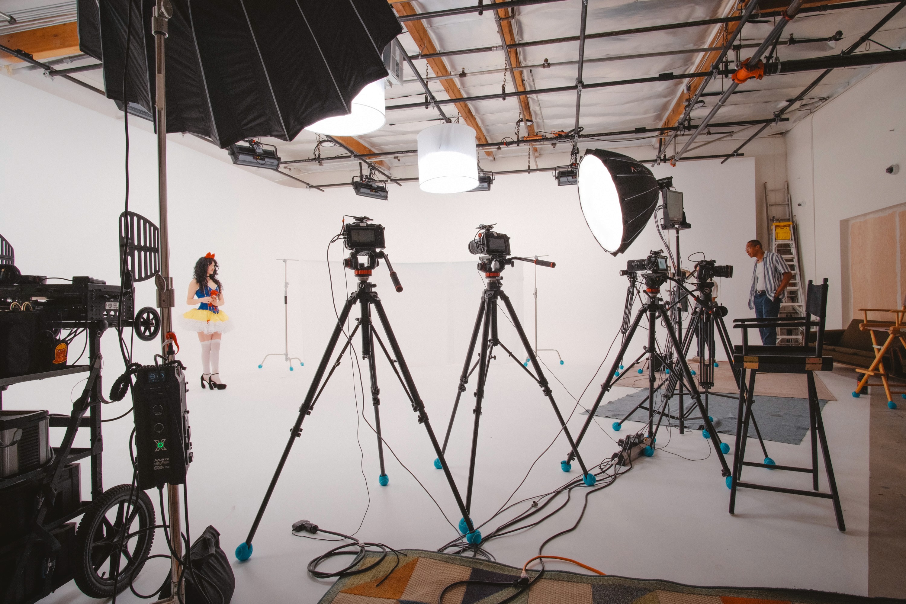 If we need to repaint the entire floor after your shoot, there’s an additional fee of $100–$200, depending on how many coats it takes. This usually only applies to full-day shoots or large crews that go heavy on foot traffic without using booties. We’ll always talk with you before adding this charge.